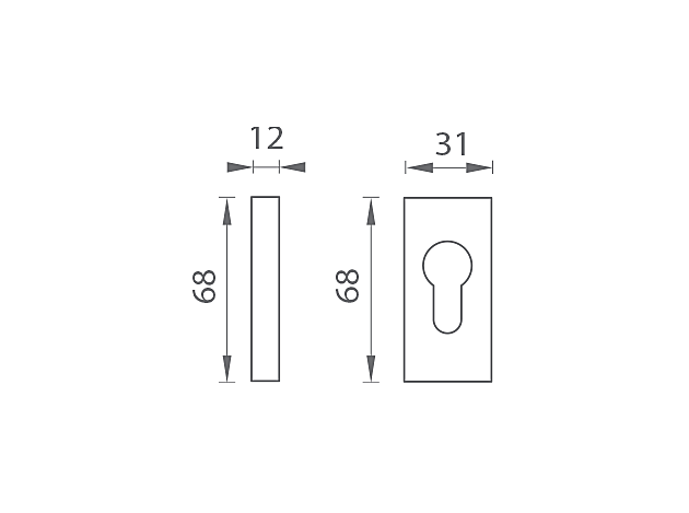 Rozeta je dimenzija 31 mm x 68 mm, debljine 12 mm i ima otvor za cilindrični umetak (PZ).